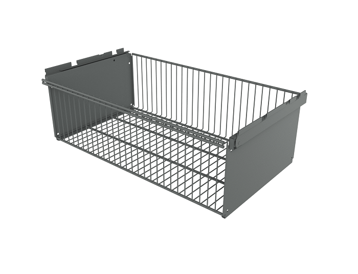 Корзина выдвижная Титан GS предназначена для установки на гардеробную систему. Изготовлена из проволоки, такой же как и сетчатые полки Титан GS. Учитывая крупноячеистую структуру, выдвижные корзины являются отличным вариантом для хранения одежды, поскольку обеспечивается отличная вентиляция вещей. Корзина выдерживает до 35 кг при ее равномерном распределении. Устанавливается на кронштейны полок Титан GS 435 (в комплект не входят). Покрытие: порошково-полимерное, гипааллергенное и устойчивое к механическому воздействию. Цвет: серебристый.